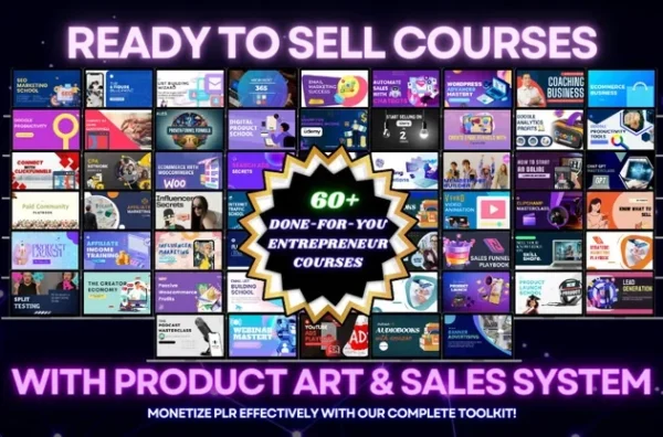 60+ PLR Video Courses Digital Product – Done-For-You Entrepreneur Niche, DFY Funnels, Customizable Product Art Templates – Resell Ready