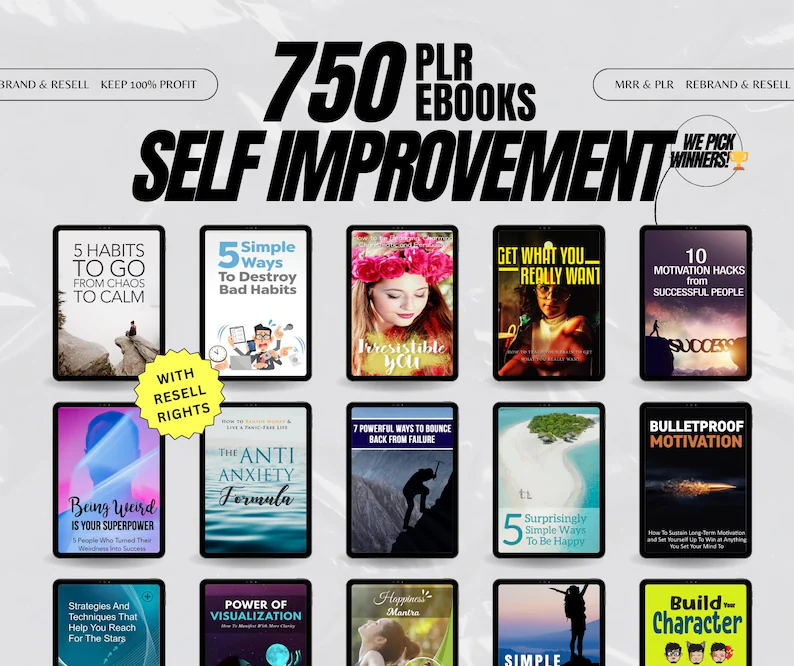 PLR EBOOKS Self Improvement Bundle/750 Digital Books With Resell Rights/Ebook Bundle/Personal Development/Digital Product Passive Income/MRR